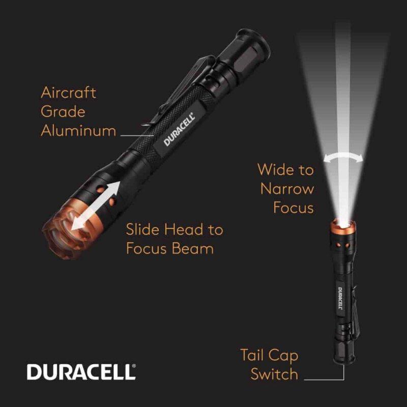 Duracell LED-lommelygte i aluminium med zoomfunktion - 150lm