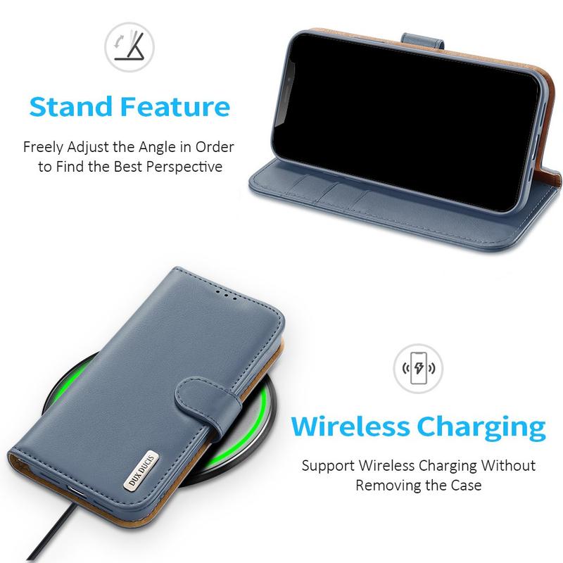 - Den magnetiske lukning i læderpung covers hjælper med at holde dine kort og telefon sikre, hvilket reducerer risikoen for tab eller tyveri.