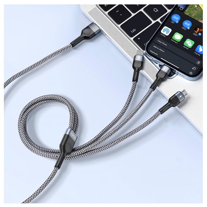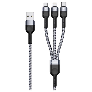 Oplad op til tre enheder samtidigt med A3 series 3-i-1 opladerkabel fra Duzzona.