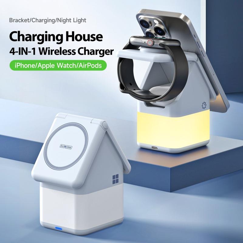 Duzzona W20 4-i-1 trådløs opladningsstation med natlys til iPhone, AirPods, Apple Watch - 15W