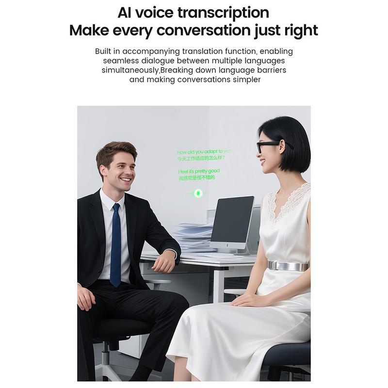 Smarte briller som E02 bruger AI-billedgenkendelse og realtidsoversættelse til at bygge bro over kommunikationskløfter med det samme. Dens dobbelte rolle som både kamerabrille og trådløs lydenhed gør den til en futuristisk alt-i-en-gadget til både produktivitet og fritid.