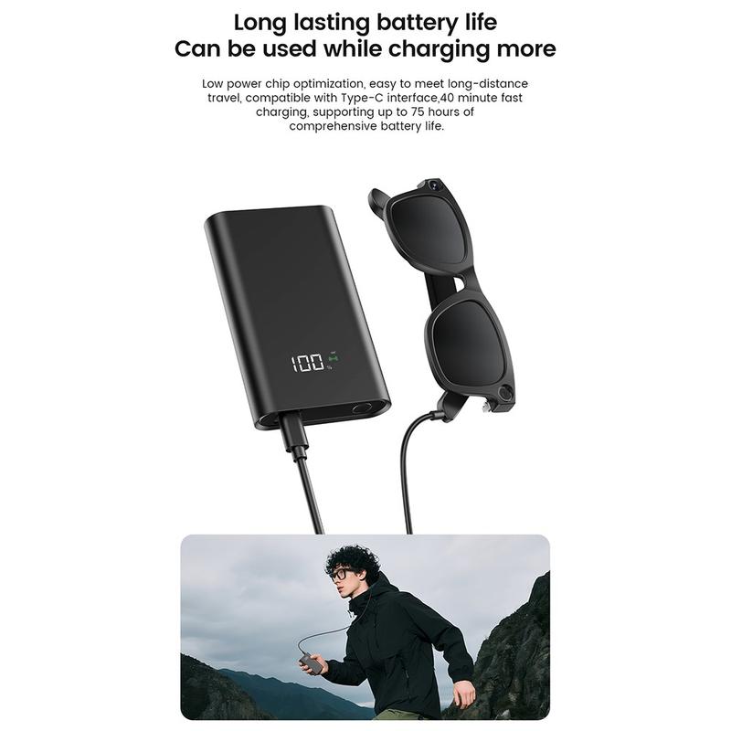 - Lang batterilevetid - 320 mAh batteri med Type-C-hurtigopladning; op til 75 timers standby, 10 timers musik, 3 timers kontinuerlig optagelse.