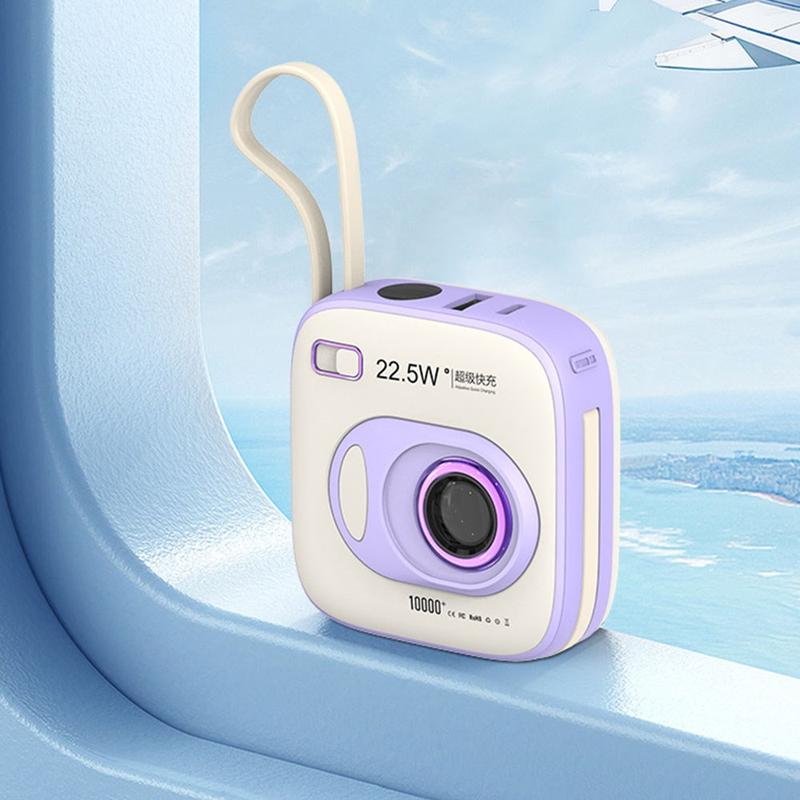 E52 10000mAh Mini kablet powerbank i kameraform bærbar telefonoplader ekstern batteripakke - lilla