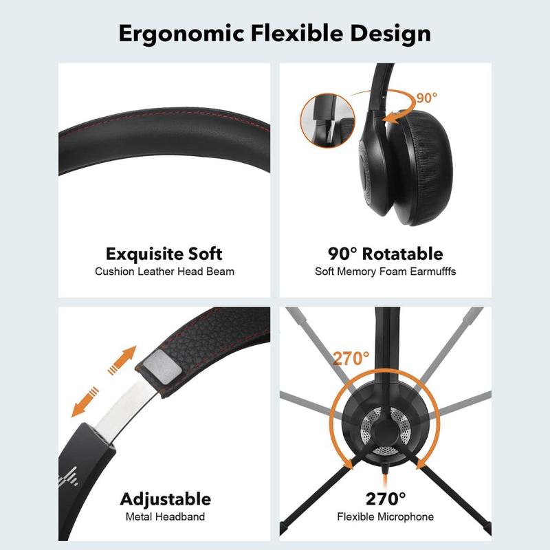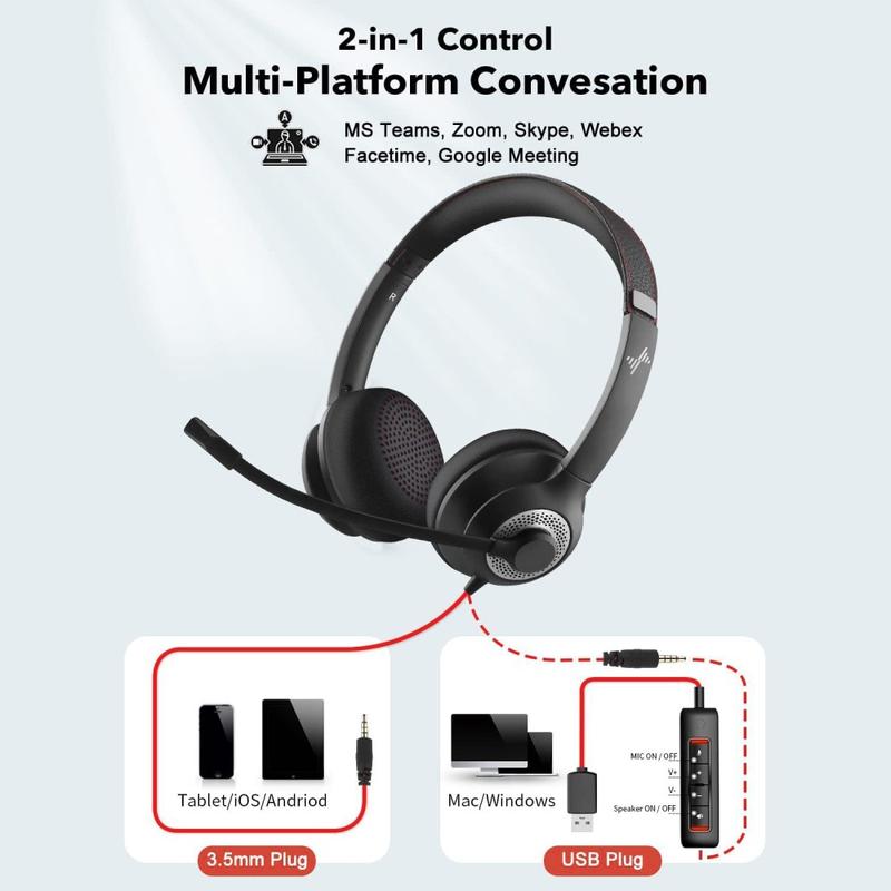 EAGLEND EH01-headsettet kombinerer alsidighed, komfort og overlegen lydkvalitet, hvilket gør det til en fremragende investering for både professionelle og almindelige brugere. Dets dobbelte tilslutningsmuligheder og støjreducerende mikrofon sikrer klar kommunikation på tværs af forskellige platforme, hvilket forbedrer produktiviteten og brugeroplevelsen.