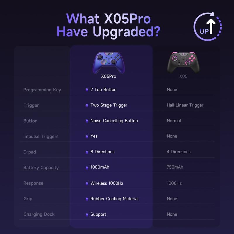 Dominer alle spil med EasySMX X05Pro-gamingcontrolleren, der er udviklet til præcision, ydeevne og alsidighed. Med adaptive triggere i to trin, Hall-effekt-joysticks og tre forbindelsestilstande leverer denne controller jævn respons og fordybende gameplay på tværs af alle platforme - fra Nintendo Switch til pc og mobil.