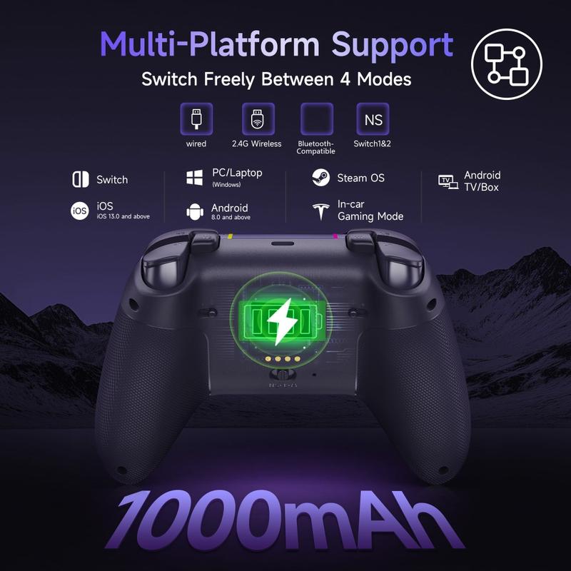 - Triple Mode Connectivity - Skift nemt mellem 2,4 GHz trådløs, Bluetooth-kompatibel og kablet USB-C-tilstand for problemfri kompatibilitet med Switch, Windows, Android og iOS.