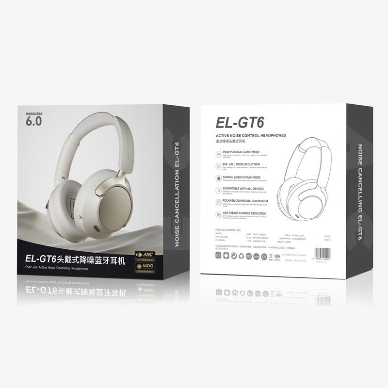 EL-GT6 Over-Ear ANC trådløse hovedtelefoner / gaming-headset med Bluetooth 6.0, hi-fi-lyd, lav latenstid
