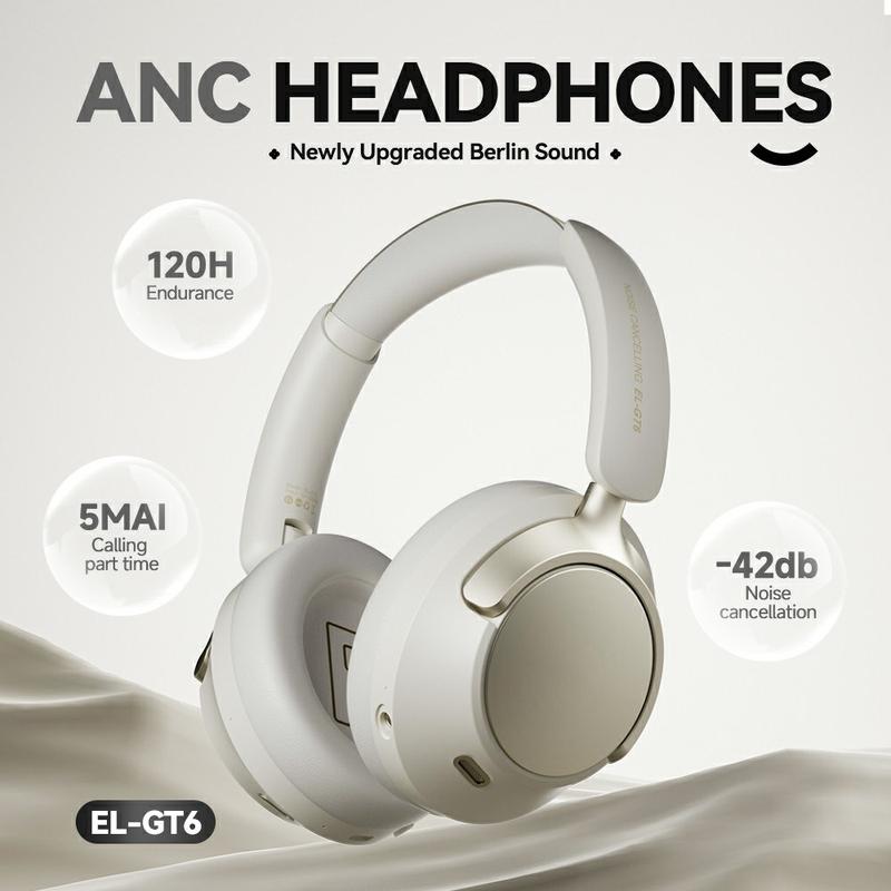 EL-GT6 ANC støjreducerende trådløse hovedtelefoner leverer fordybende lyd og langvarig komfort til både gamere, musikelskere og professionelle. Med avanceret ANC 3.0-teknologi med adaptiv støjreduktion blokerer den for distraktioner og forbedrer din lytteoplevelse. Udstyret med 40 mm dynamiske drivere og kompositmembraner af mikrokrystal producerer den dyb bas, klare mellemtoner og skarpe høje toner i HiFi-lydkvalitet. Med Bluetooth 6.0-forbindelse, lav latenstid og op til 120 timers spilletid kombinerer dette over-ear-headset ydeevne, komfort og udholdenhed i en førsteklasses pakke.