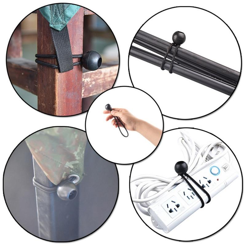 Fastgør presenninger, kabler, soveposer og andet udstyr med disse alsidige bungee-lignende snore. Hver snor har et elastisk design med løkke og en plastikkugle i enden, hvilket giver en hurtig og nem måde at sætte op, justere og pakke ned på. De er bygget til udendørsentusiaster og er perfekte til camping, vandreture, fiskeri og meget mere - alt sammen for at sikre pålidelig spænding og et fast greb, uanset hvor du har brug for det.