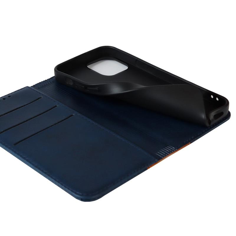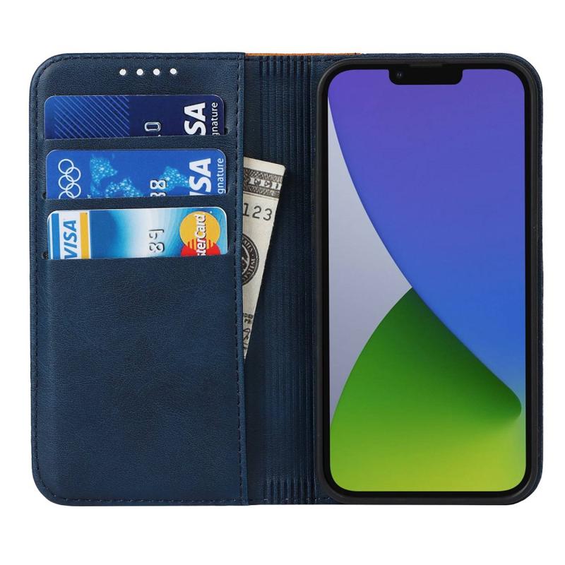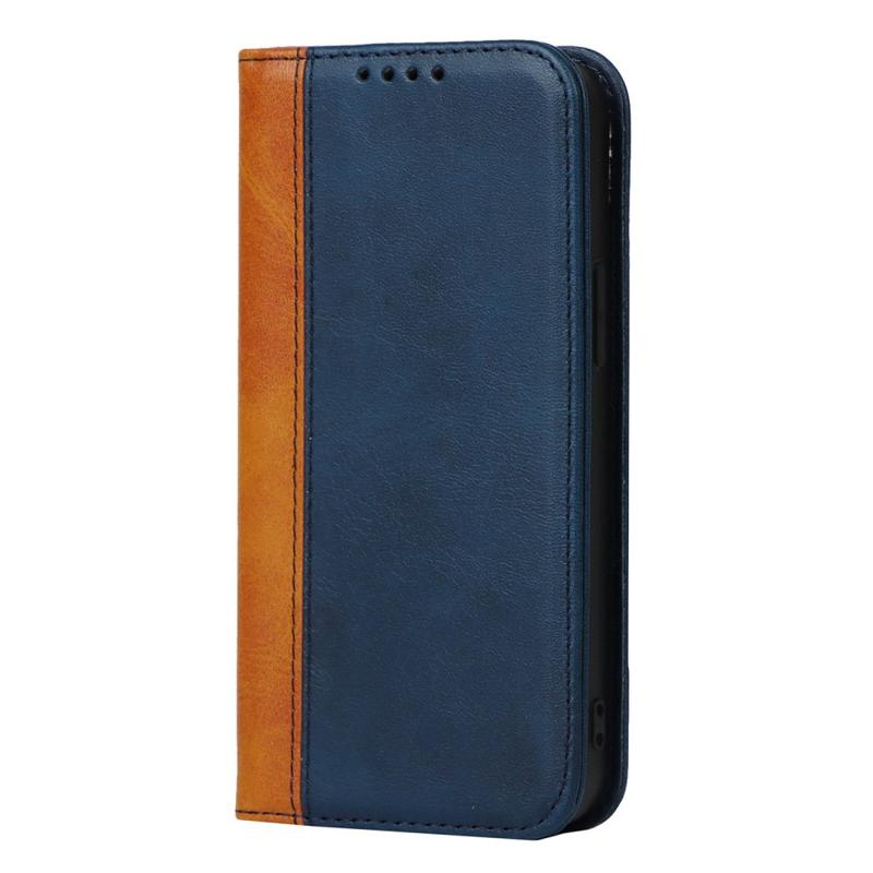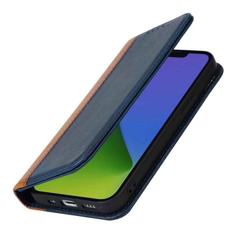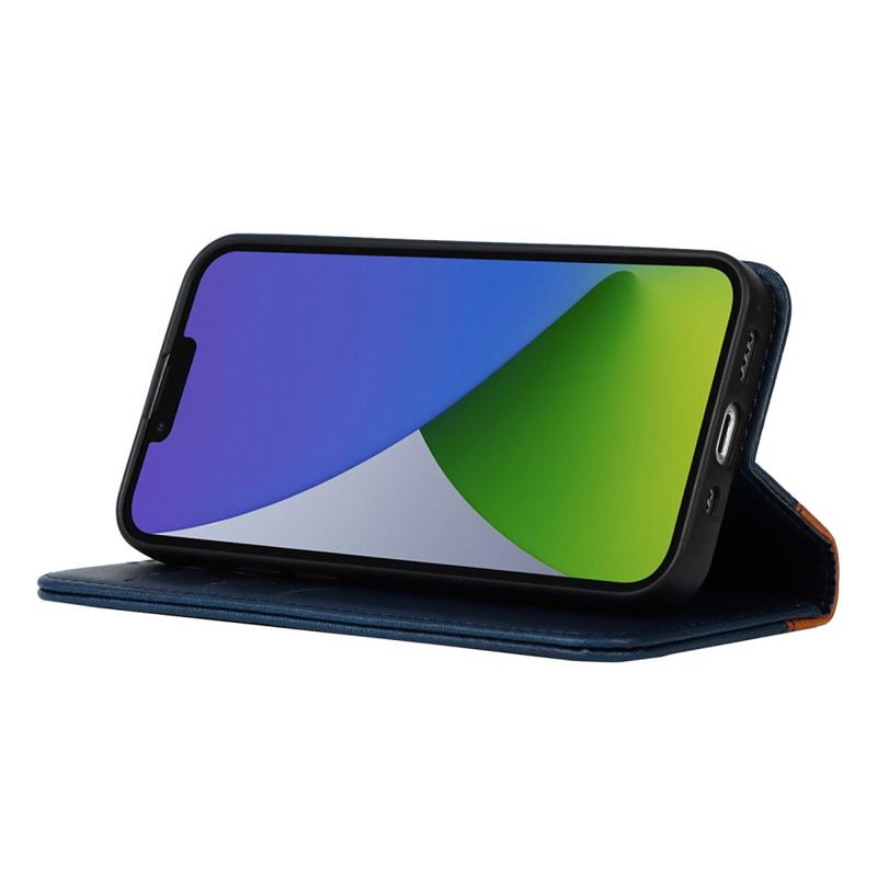 Til iPhone 14 Bi-farve splejet Magnetisk autoabsorberet kalvetekstur PU læder telefontetui Drop-sikker pung og cover