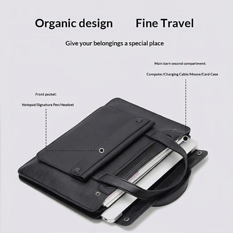 - Brug som en slank, professionel håndtaske til møder