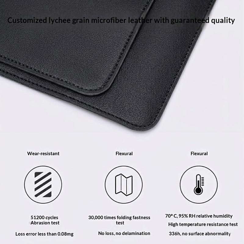 Tasken er fremstillet af slidstærkt polyuretan med en struktureret lychee-finish og er designet til regelmæssig daglig brug, samtidig med at den bevarer et pænt og professionelt look. Overfladen er også modstandsdygtig over for lette vand- og oliepletter, hvilket gør det nemmere at tørre den af og holde den præsentabel i daglig brug.