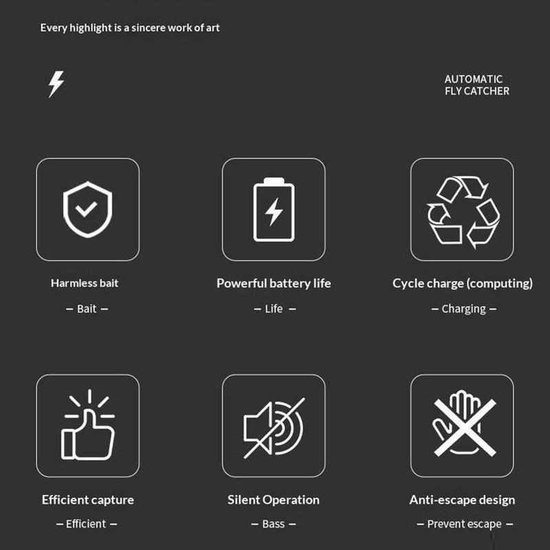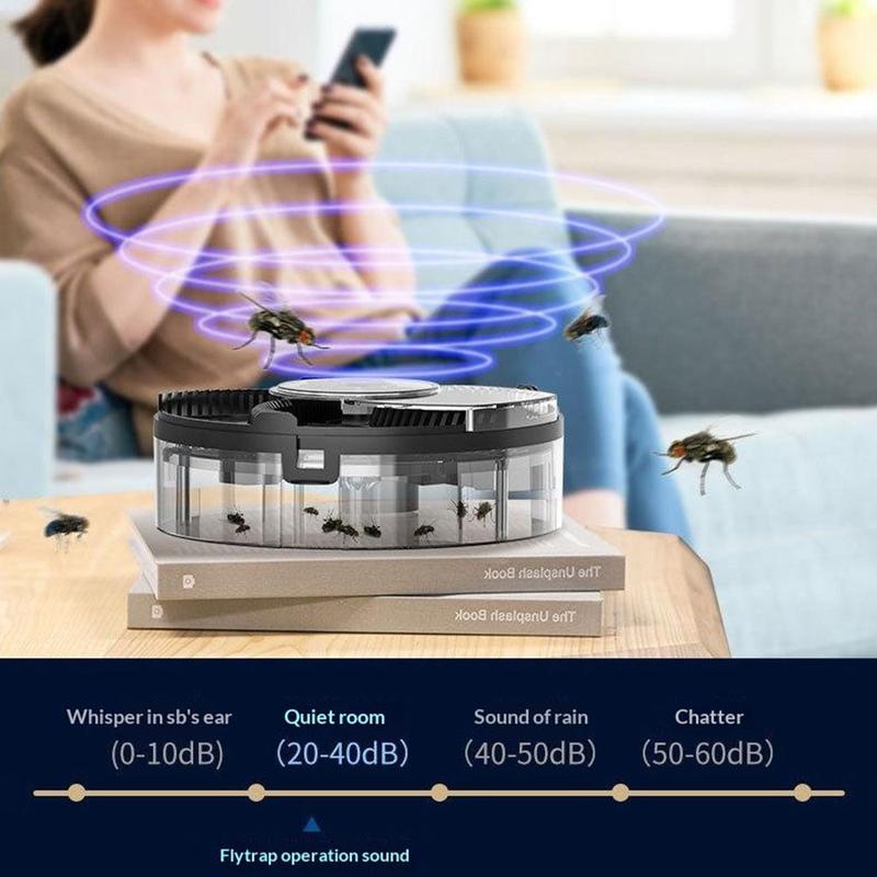 Gør indendørsrum mere behagelige og hygiejniske med denne USB-opladelige, automatisk roterende fluefanger. Denne fluefanger til husholdningsbrug er designet til stille og praktisk daglig brug og anvender en fysisk fangstmetode med roterende sugeteknologi til at fange flyvende insekter uden brug af stærke lugte eller komplicerede opsætninger. Den er en nyttig løsning til køkkener, spiseområder, caféer, madlavningsrum og andre indendørs miljøer, hvor fluer kan være til gene.