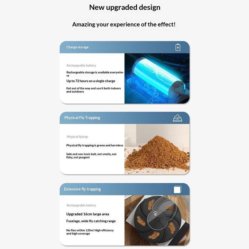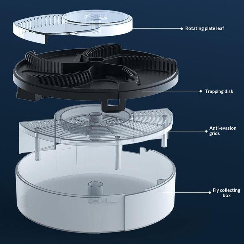 Den automatiske roterende mekanisme har lav driftsstøj, hvilket gør den velegnet til brug både dag og nat uden at forstyrre. Den brede fangstflade på 16 cm og dækningsområdet på op til 120 m gør den effektiv til større indendørs rum, mens det flugtbeskyttende design hjælper med at holde de fangede insekter inde. Den aftagelige konstruktion gør også vedligeholdelsen nemmere og muliggør regelmæssig rengøring for mere hygiejnisk brug på lang sigt.