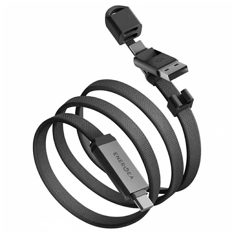Energea Sheath Travel 2-i-1 opladnings- og datakabel - 60W hurtig opladning, udskiftelige USB-C/USB-A-stik, 1.2m flettet kabel