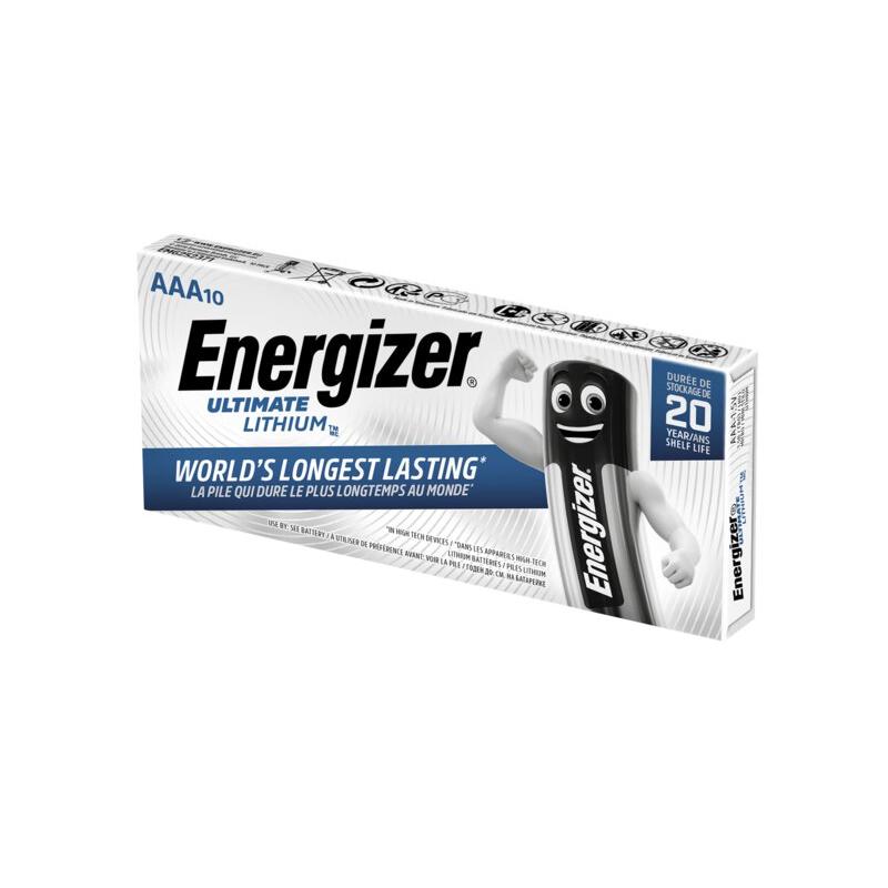 Energizer Ultimate Lithium LR03/AAA-batterier er højtydende batterier, der er designet til enheder med højt strømforbrug, f.eks. digitalkameraer. Disse batterier giver den længste batterilevetid i R03/AAA-batterikategorien og holder 7 gange længere end et normalt alkalisk batteri.