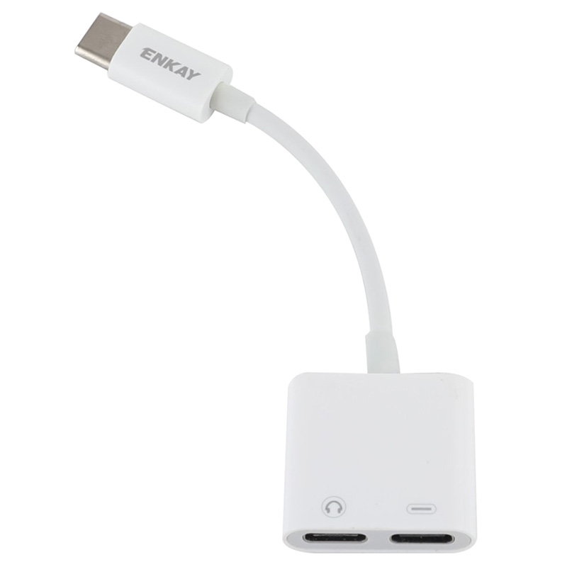 Enkay ENK-AT105 Dual USB-C Lyd og Opladningsadapter - Hvid