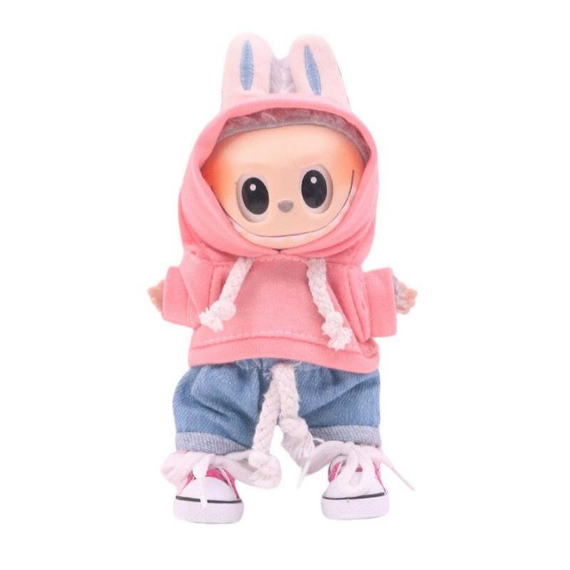 Ensfarvet hættetrøje til 17cm Labubu minifigur - Blød hættetrøje i bomuldsblanding, let påklædningsdesign