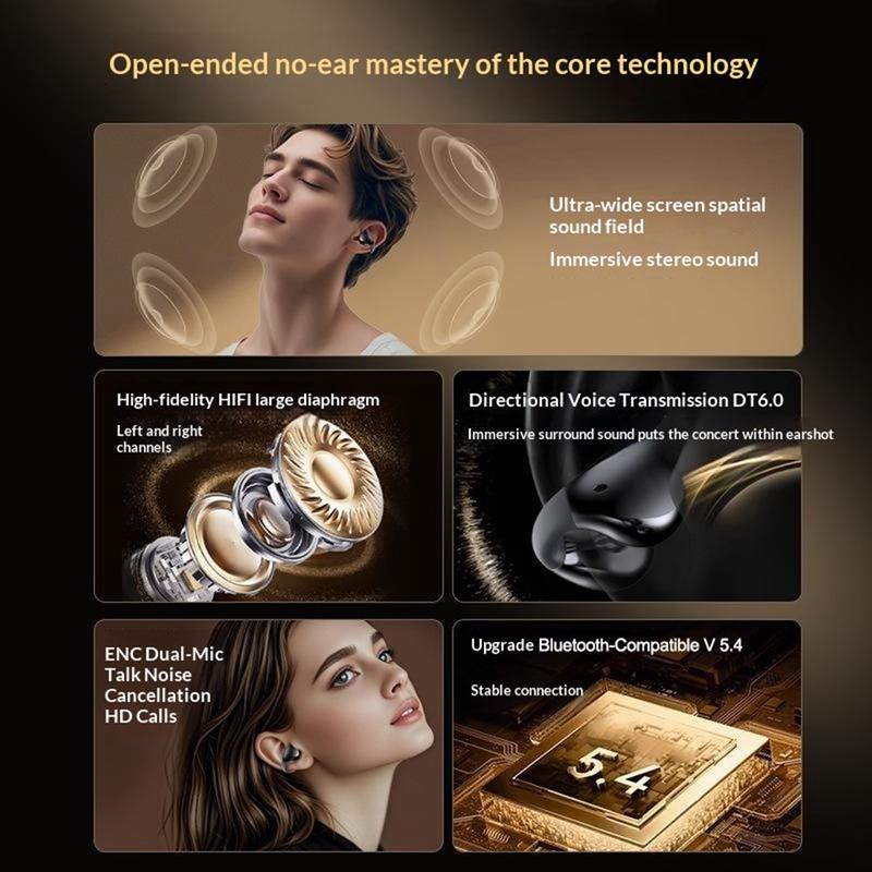 ERAZER EX05 trådløse øretelefoner med åben ørekonstruktion og klips – Bluetooth 5.4-sportshøretelefoner med opladningsetui