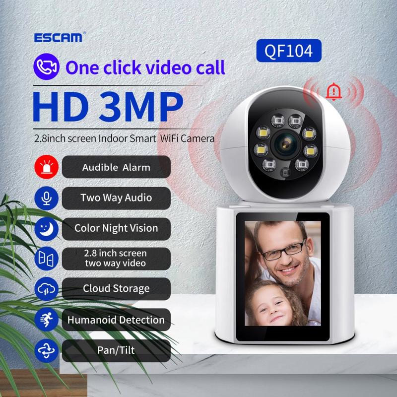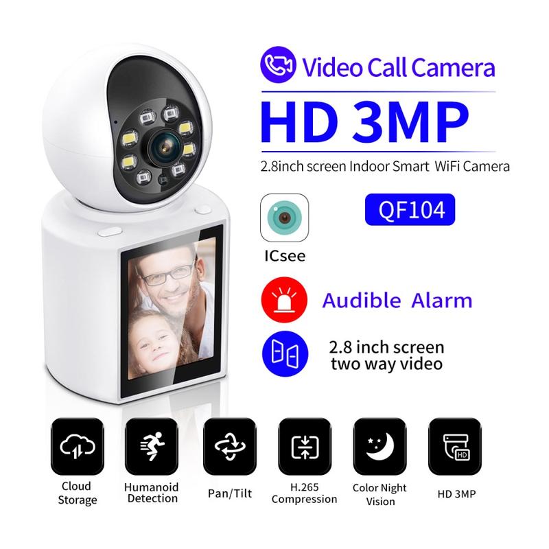 Hold øje med hvert hjørne af et rum, tal med familien, og modtag smarte advarsler med ét kompakt indendørskamera. QF104 optager i skarpe 3MP, leverer ægte tovejslyd og lader besøgende starte et videoopkald ved at trykke på en enkelt knap på den indbyggede 2,8-tommers skærm.