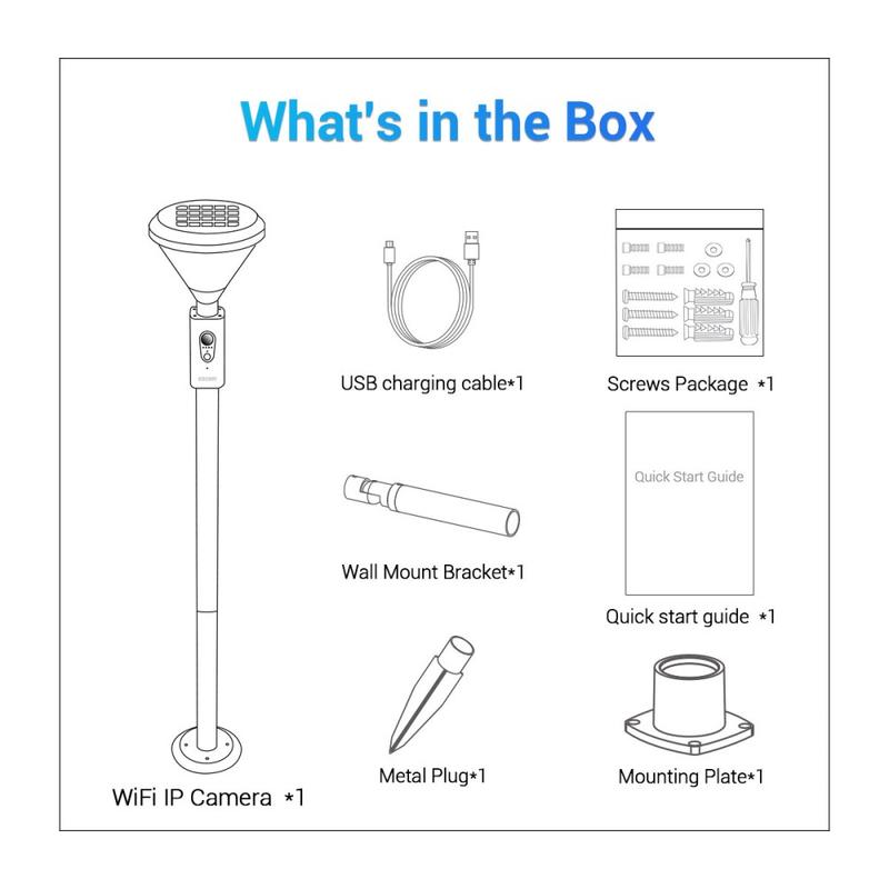 Hold stier, terrasser og græsplæner sikre med et kamera, der også er en lysende plænelampe. ESCAM QF190 drives af solen, understøttes af batterier og er bevæbnet med PIR-registrering af mennesker og giver dig klar tovejs-lydovervågning uden ledninger eller månedlige gebyrer.