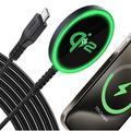 - Opladeren har ikke noget indikatorlys. Den grønne baggrundsbelysning på billedet er kun en demonstration af QI2-teknologien.