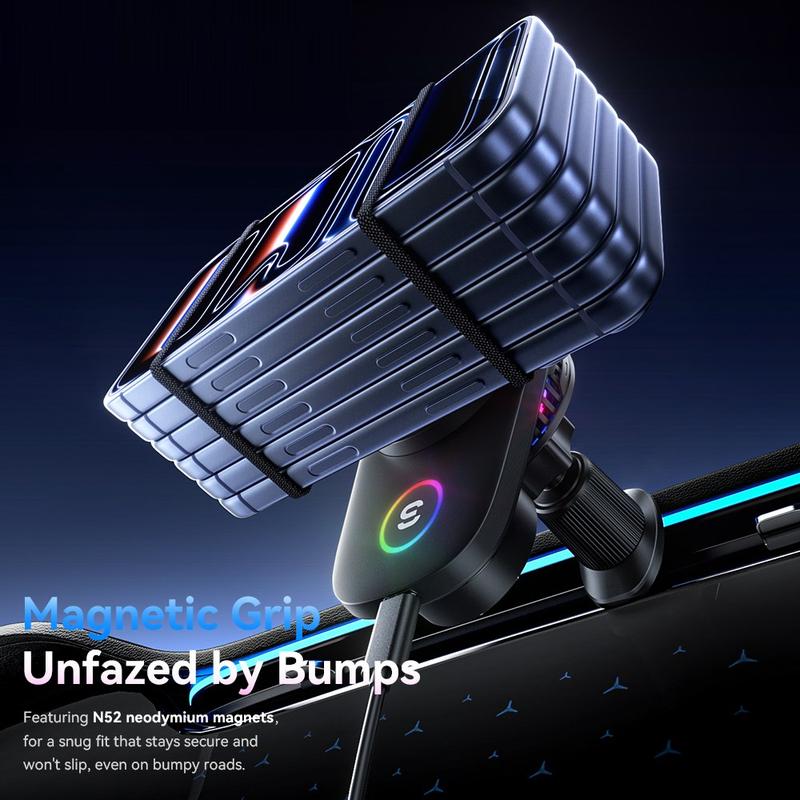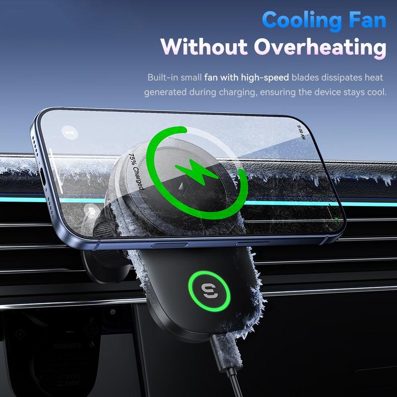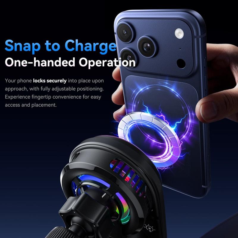 Dette er mere end blot en almindelig bilholder. Den giver dig hurtig opladning, et stærkt magnetisk greb og en mere sikker måde at holde din telefon inden for synsfeltet, mens du kører. Den indbyggede køleventilator hjælper med at opretholde en mere stabil opladningsydelse, og den låsbare ventilationsklemme er designet til at sidde sikkert fast, selv på ujævne veje. Det er en smart opgradering for alle, der ønsker mindre kabelrod, nemmere betjening med én hånd og en mere eksklusiv opsætning i bilen.