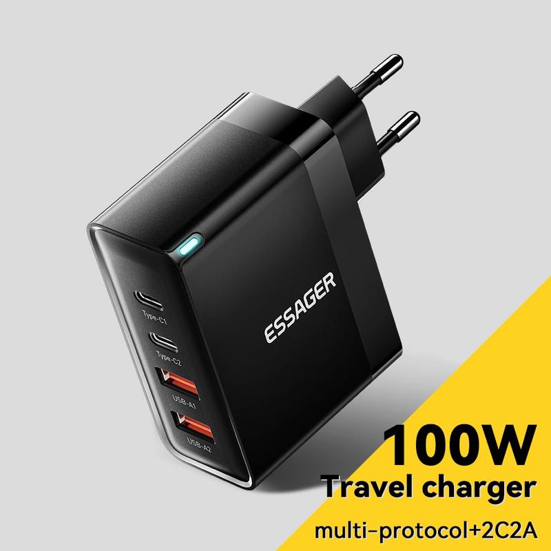 Opgrader dit opladningssetup med Essager ES-CD37 100W Quick Charger Adapter - hurtig, sikker og bygget til moderne teknologibrugere!