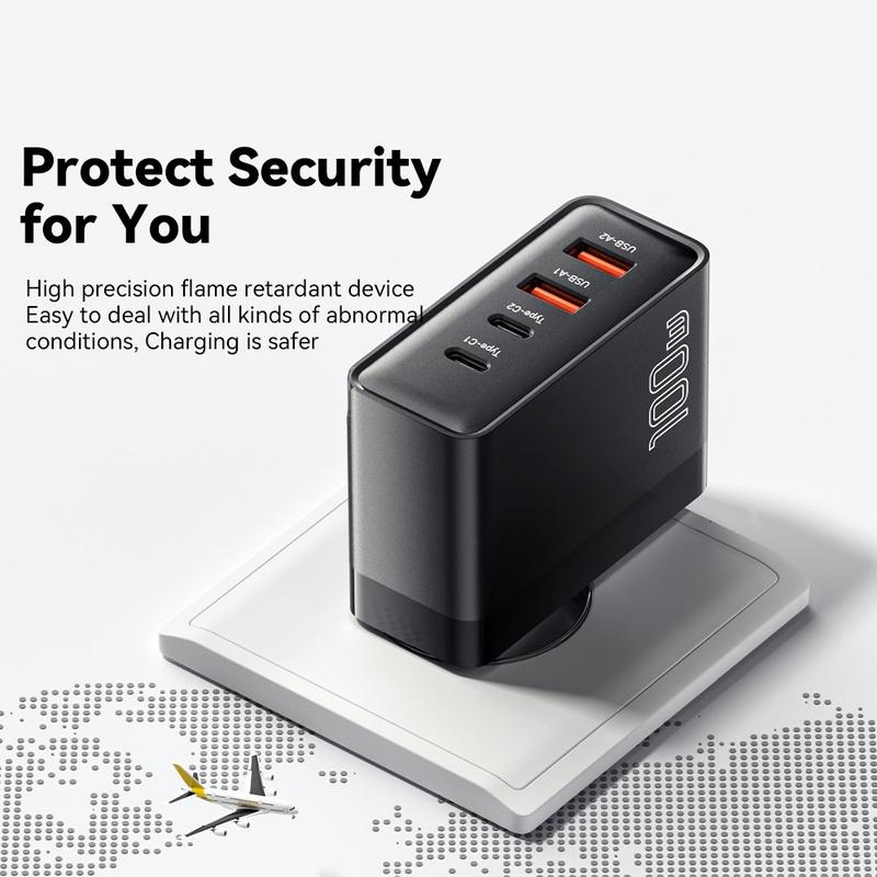 - Oplad op til 4 enheder på én gang - Med 2 USB-C + 2 USB-A-porte understøtter denne oplader bærbare computere, tablets, smartphones, høretelefoner og meget mere.