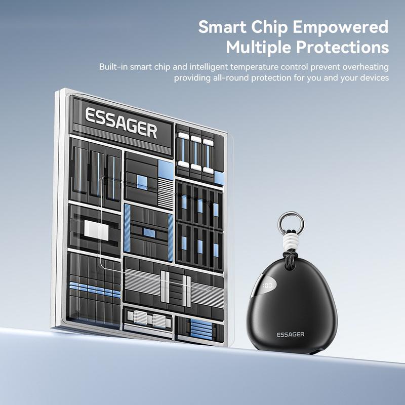 ESSAGER 10000mAh powerbank kombinerer højhastighedsopladning, indbygget kabelkomfort og holdbar konstruktion i en kompakt form. Den er ideel til brugere, der vil have pålidelig strøm uden at bære på ekstra tilbehør, hvilket gør den smart, bærbar og fremragende til hverdagsbrug.