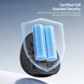 En indbygget intelligent sikkerhedschip giver optimeret opladning, samtidig med at den beskytter mod overstrøm, overspænding, kortslutning og overophedning.