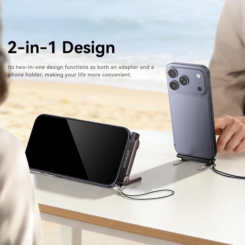 Hvis du ønsker mere bekvemmelighed fra en simpel adapter, er denne ESSAGER-model et smart valg. Den giver dig opladning, dataoverførsel og håndfri visning i ét stilfuldt og bærbart design, hvilket gør den til en nem opgradering til daglig brug.