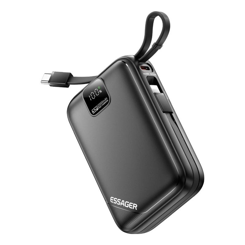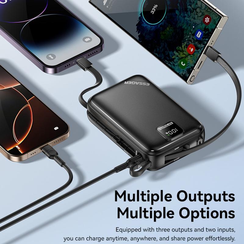 ESSAGER PD 65W powerbank kombinerer hurtig opladning på laptop-niveau, to indbyggede kabler, høj kapacitet og smart LED-overvågning, hvilket gør den til den ultimative alt-i-en-opladningsløsning til rejser, arbejde og hverdagsbrug.