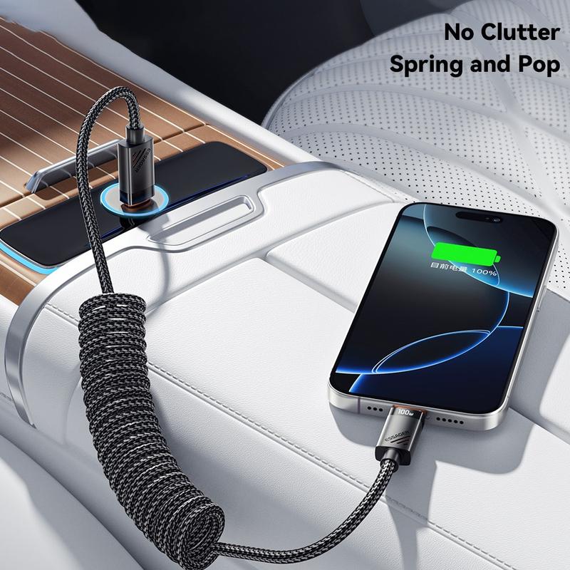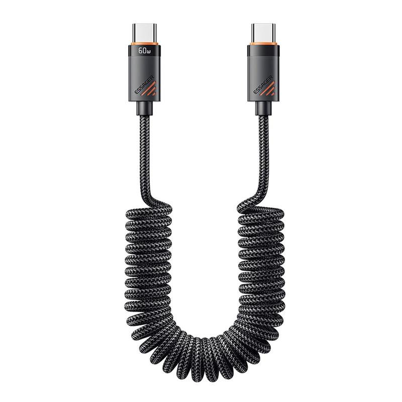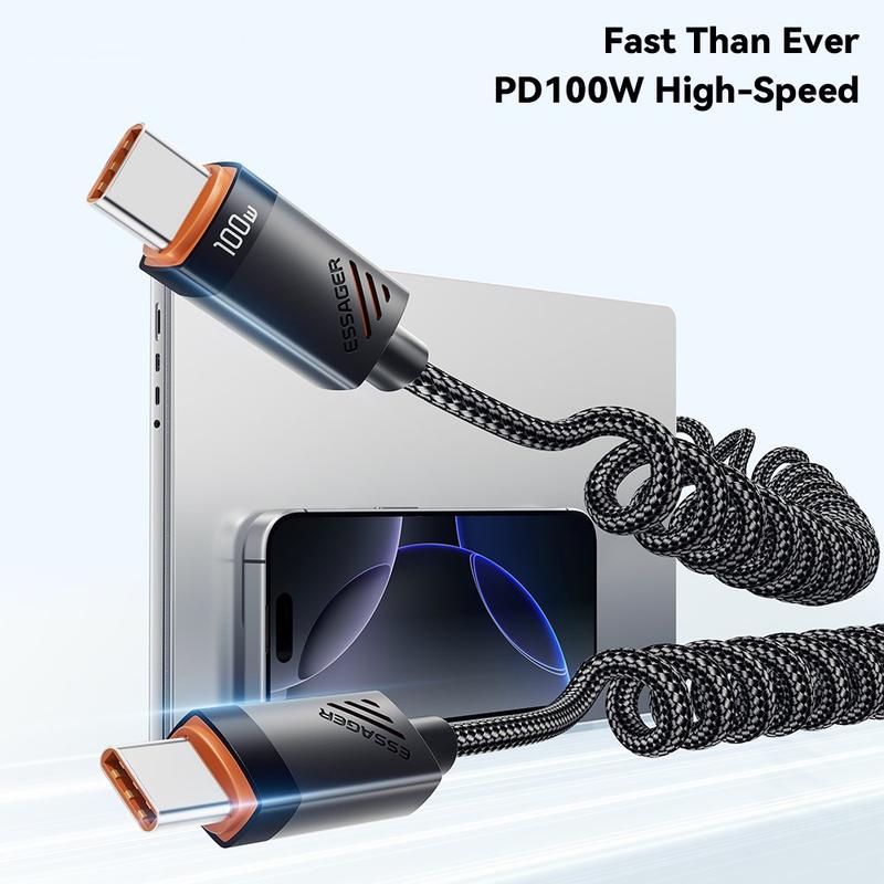 ESSAGER-fjederkablet kombinerer hurtig opladning, holdbarhed og et praktisk spiralformet design, der hjælper med at holde kablerne organiserede. Det er ideelt til brugere, der ønsker et pålideligt USB-C-kabel, der strækker sig, når det er nødvendigt, men forbliver kompakt, når det ikke er i brug, hvilket gør det særligt praktisk til brug i bilen og bærbare opladningsopsætninger.