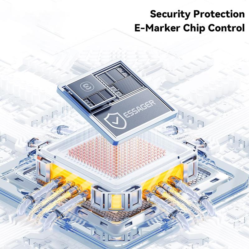 - Indbyggede E-Marker-chips gør det muligt for USB-C-kabler at kommunikere sikkert med enheder og opladere for korrekt strømforsyning.