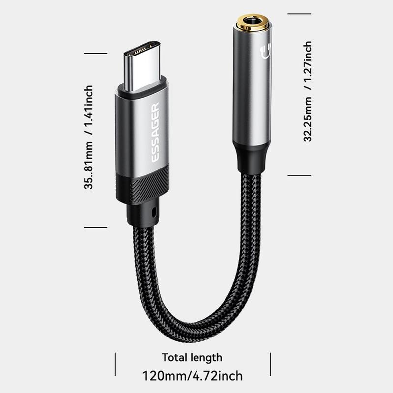 Essager Type-C til 3.5mm lydadapter - hi-fi-lyd med DAC-chip