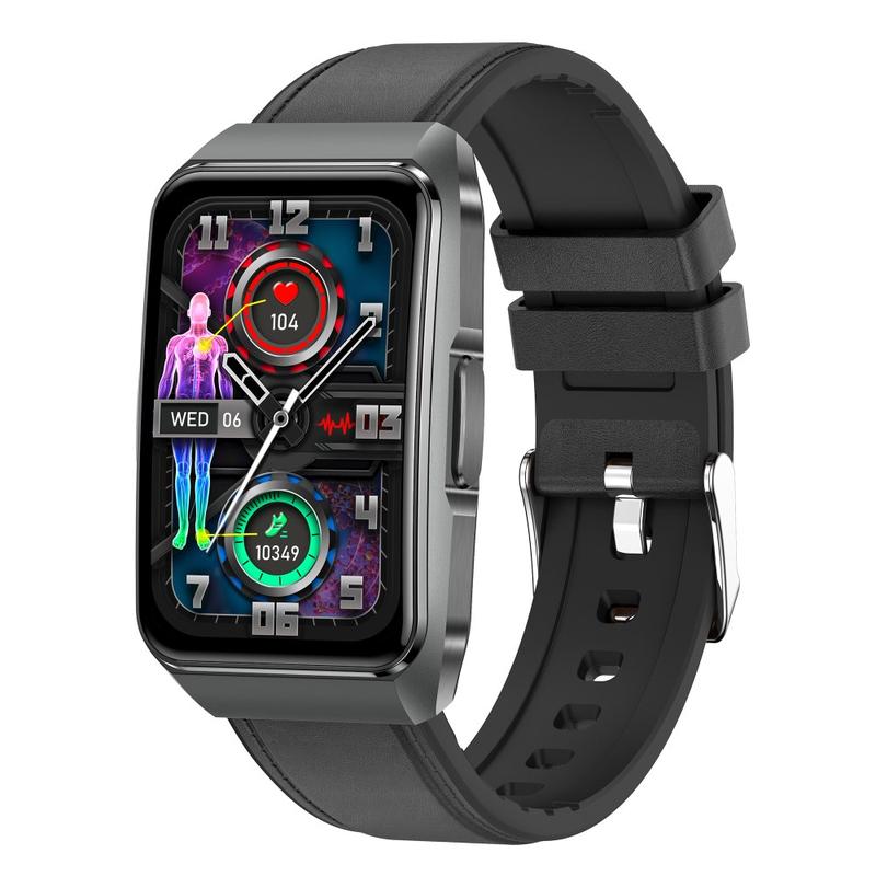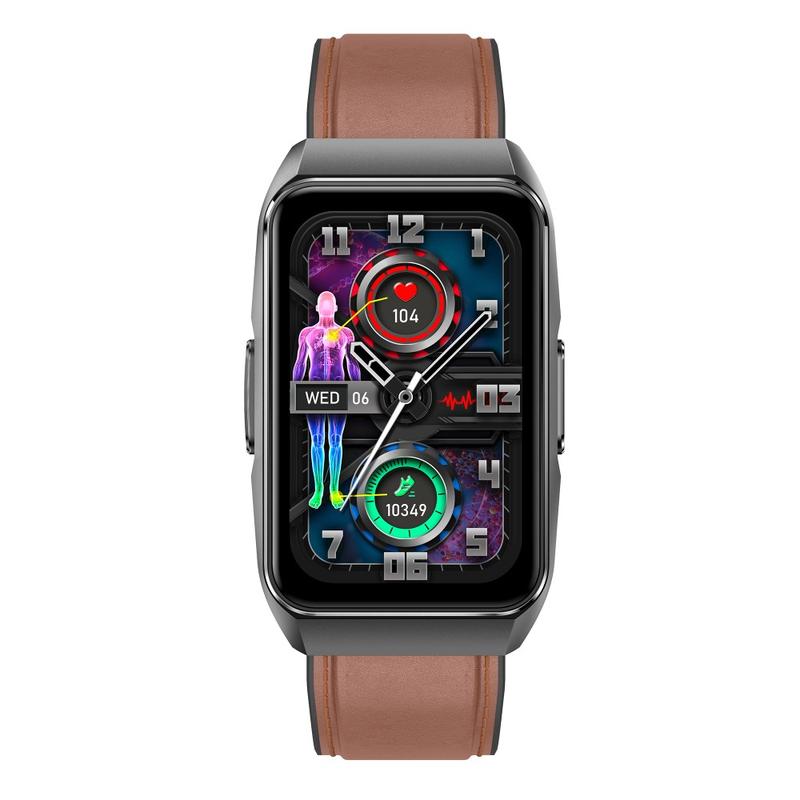 ET650 Vandtæt smartur med kropstemperatur, sundhedsmåler og Bluetooth-opkald - læder- og silikonerem