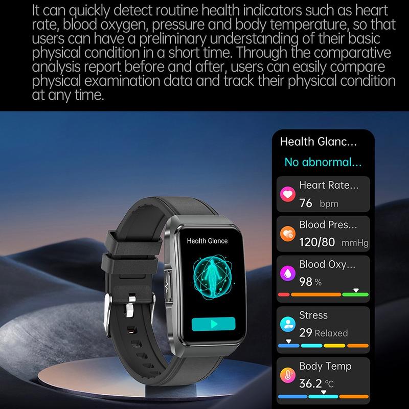 Løft din daglige rutine med ET650 Smart Watch. Dette alsidige ur har en elegant kombination af læder- og silikonerem og tilbyder overvågning af kropstemperatur i realtid, sundhedssporing og praktiske Bluetooth-opkald - alt sammen i et stilfuldt, holdbart design. Hold dig forbundet og informeret, uanset hvor du går, med et smartwatch, der er skabt til at forene form og funktion.