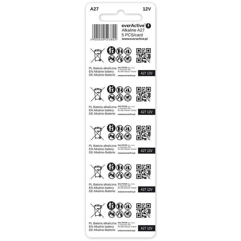 EverActive A27/L828 alkaliske batterier 12V - 5 stk.