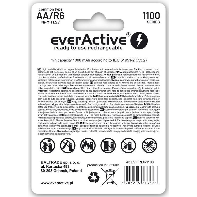 EverActive Infinity Line EVHRL6-1100 Ni-MH R6/AA genopladelige batterier 1100mAh - 4 stk.