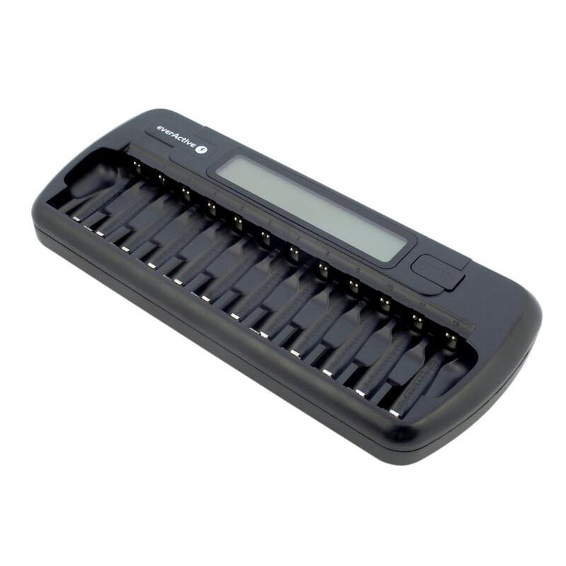 everActive NC 1200 har op til 12 uafhængige opladningskanaler til NI-MH-batterier i størrelserne R6/AA eller R03/AAA, hvor hver celle oplades individuelt. Det giver dig mulighed for at oplade 12 genopladelige R6/AA- eller R03/AAA-batterier i enhver konfiguration/kombination, med enhver kapacitet og fra enhver producent.