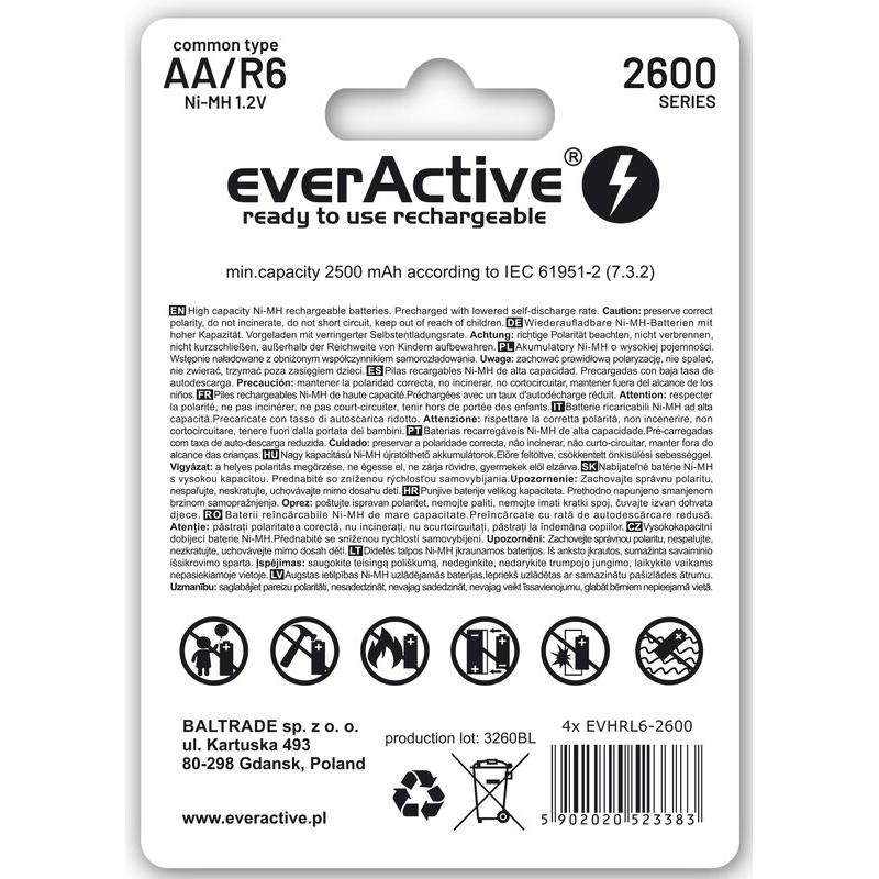 EverActive Professional Line EVHRL6-2600 Ni-MH R6/AA Genopladelige batterier 2600mAh - 4 stk.