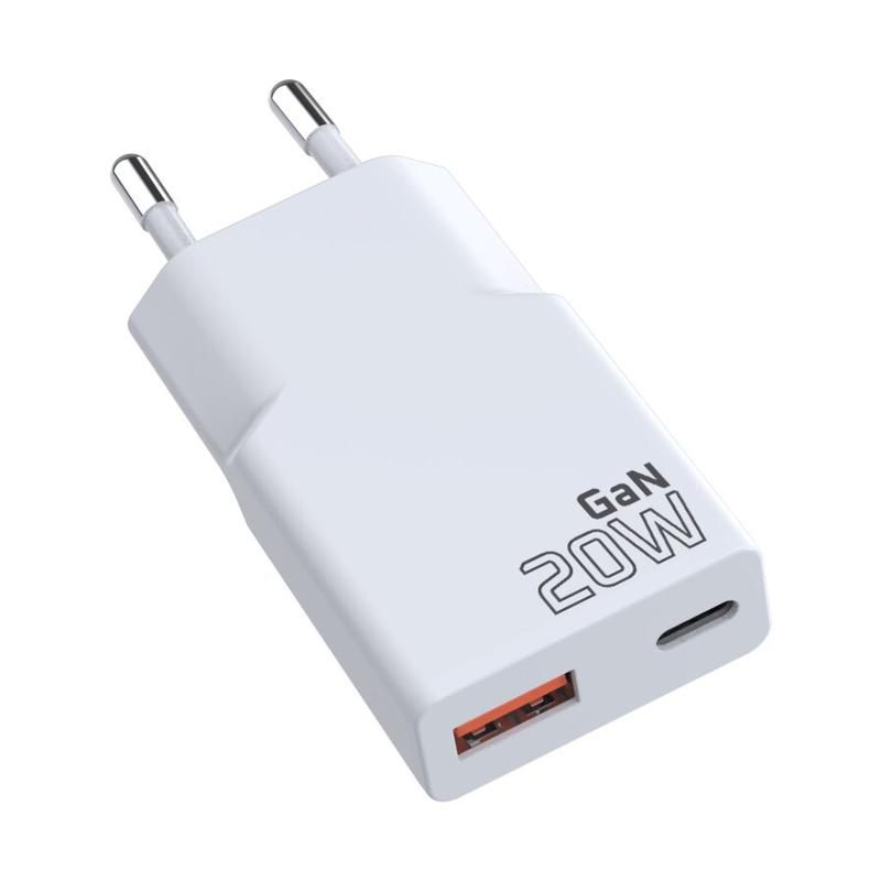 Udstyret med en USB-C PD-port og en USB QC3.0-port leverer opladeren en samlet udgangseffekt på 20W. Du kan oplade to enheder på én gang - smartphones, tablets, kameraer, ultrabooks eller powerbanks - hurtigt og pålideligt.