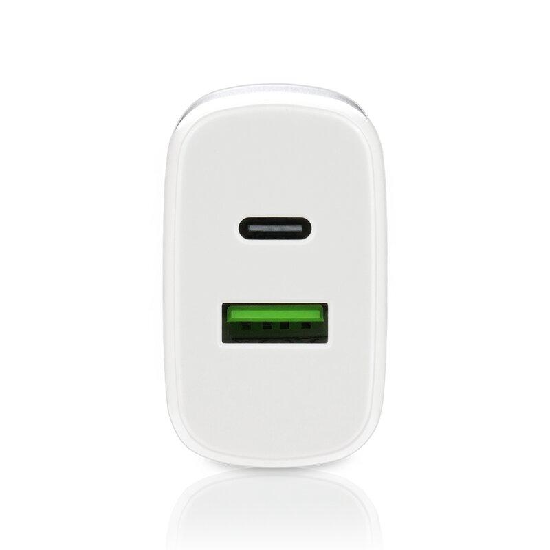 everActive SC-370Q er en kompakt og kraftfuld vægoplader med både USB Quick Charge 3.0- og USB-C Power Delivery-porte. Med en samlet udgangseffekt på 25 W understøtter den forskellige hurtigopladningsteknologier, herunder PPS, PD 3.0, QC4+ m.m., hvilket gør den ideel til hurtig og effektiv opladning af smartphones, tablets, ultrabooks og andre enheder. Opladerens iQ Smart Charging Technology justerer automatisk opladningshastigheden baseret på den tilsluttede enhed, hvilket sikrer optimal ydeevne. Det robuste, brandsikre hus og de indbyggede sikkerhedsfunktioner beskytter mod overopladning, kortslutning og overophedning.