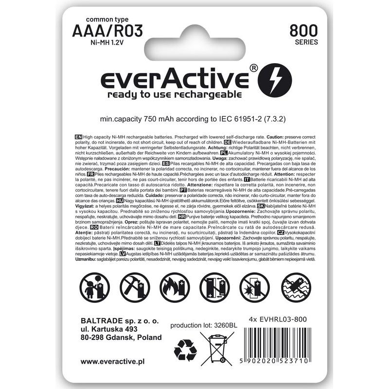 EverActive Silver Line EVHRL03-800 Ni-MH R03/AAA genopladelige batterier 800mAh - 4 stk.