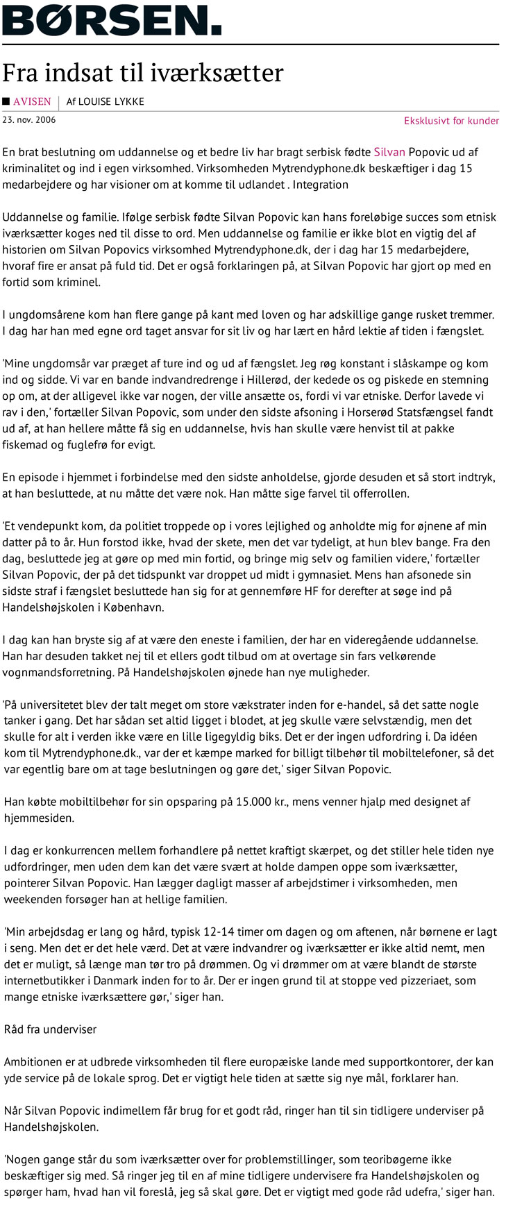 27.11.2006 - Jyllands Posten