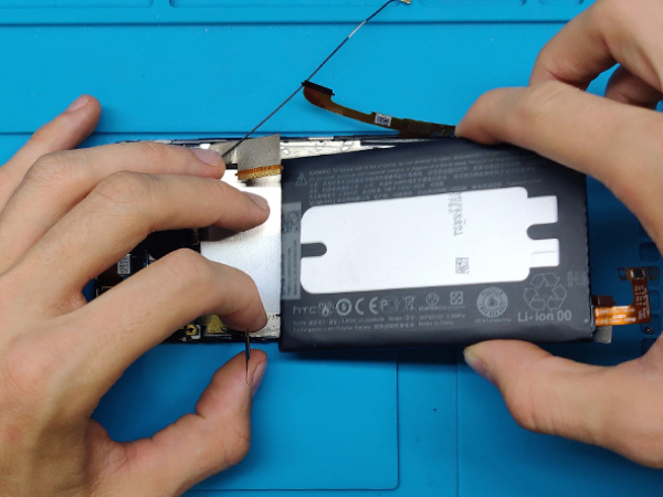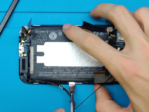 Når du forsigtigt har løsnet skærmenheden, skal du adskille den fra telefonen.
