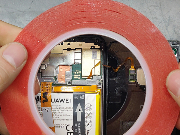 - Brug dobbeltklæbende tape omkring kanterne på telefonen. - Læg bagcoveret over det og pres rundt i kanterne med fingrene. - Nu er du færdig med at udskifte skærmen.