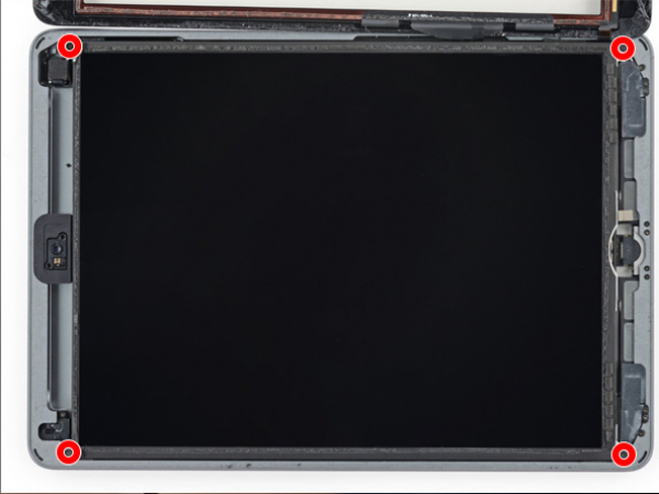 - Arbejd dig rundt om iPad'ens kant og skrab resten af klæbebåndet eller det ødelagte glas. - Forbered den nye skærm til installation. - Fjern plastikbeskyttelsen fra skærmens indre omkreds. - Geninstaller home-knappens flexkabel og beslag igen. - Geninstaller kamerabøjlen - Installer de forklippede klæbestrimler rundt om iPad'ens indvendige omkreds. - Sæt digitizer-kablerne i. - Geninstaller de skruer, der holder metalpladen, igen. - Sæt skruehjørnerne ind under klæbemidlet. - Sæt de fire skruer i hvert hjørne. - Træk papirryggen af de dobbeltsidede klæbestrimler af. - Træk plastikbeskytteren af. - Placer forsigtigt skærmen, indtil alle siderne af skærmen flugter med hinanden.