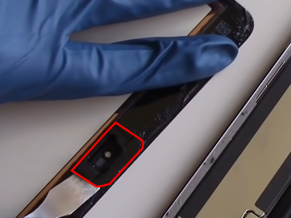 - Fjern komponenterne med varme og metalopbrydningsværktøjet. - Fjern den lille ring, der er forbundet med hjemknappen.